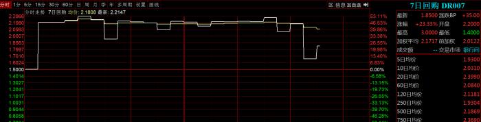 银行间回购品较为顽强,DR001上涨5.72%,加权平均报1.5162%;DR007上涨23.33%,加权平均利率升至2.1717%。