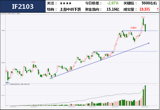 今年在经济回暖的大背景下,股指受到经济基本面的支撑,但流动性的变化仍然需要注意。今日资金面消息利空:shibor普涨、央行实现净回笼400亿元,叠加北向资金净流出,资金流收紧流出股市。今日抱团股大幅分化,下跌为主,也拖累了指数。从盘面上看,今日再次大幅走弱,触及下方关键位,若盘中跌破关键支撑,上涨趋势将暂时终结。关注关键位附近调整幅度。