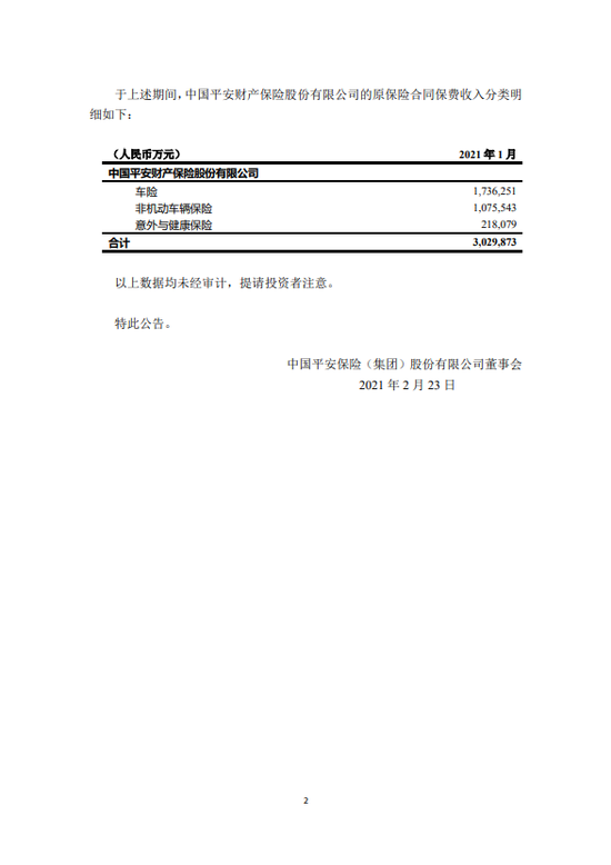 新浪财经讯 2月23日消息中国平安公布,2021年1月,公司控股子公司中国平安财产保险股份有限公司、中国平安人寿保险股份有限公司、平安养老保险股份有限公司、平安健康保险股份有限公司分别实现原保险合同保费收入人民币302.99亿元、991.94亿元、35.24亿元、18.33亿元,合计人民币1348.49亿元。