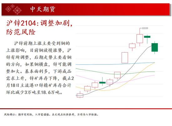 操作建议:沪锌前期上涨主要受到铜的上涨影响,目前铜放慢涨势,沪锌有所调整,后期走势主要看铜的方向,如果铜横盘,锌可能调整加大。