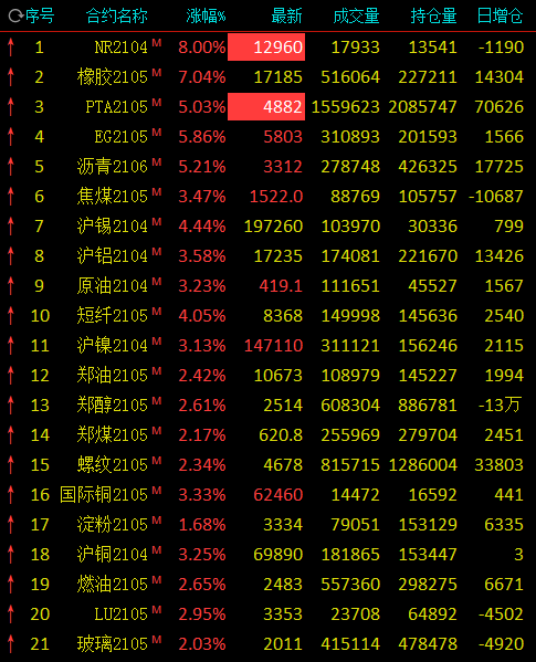 热点栏目2月25日,国内商品期市开盘大面积飘红,20号胶继续涨停,橡胶涨逾7%,PTA涨停;基本金属走强,沪铝、沪锡均涨超3%。