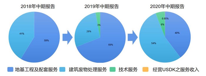 对比欧科云链的近三年中期报告可以发现,从0到1,新业务已经打开公司业务版图的豁口,并形成新的增长力。此前,在业绩说明会上,罗铤曾介绍欧科云链的业务布局,分为传统业务、创新业务和区块链大数据OKLink品牌相关的一些业务。地基方面的业务和建筑废料处理属于传统业务,目前的收入占比较大,但是总体已有所下降。