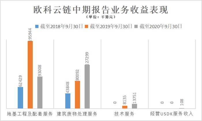 去年11月欧科云链公布的中期业绩显示,截至2020年9月30日止六个月,欧科云链收入达2.36亿港元,其中,技术服务收入由2019年同期的810万港元大幅增长71.6%至1390万港元,在该公司总收入中的占比随之提高,“此项增长主要受益于提供技术开发及资讯科技基础设施服务的收入,彰显出公司坚持探寻业务转型,稳抓金融科技及信息技术等领域的新机遇,实现技术服务业务板块的快速发展”。