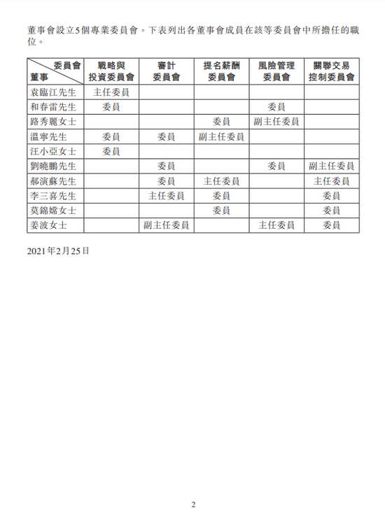 此外,公司监事会于2021年2月25日召开会议审议通过了《关于提名熊莲花女士为公司第四届监事会监事人选的议案》,据此,因工作需要,熊莲花女士获提名为第四届监事会股东代表监事候选人,任期自银保监会核准其监事任职资格且履行公司公司章程规定的程序之日起计算,至第四届监事会任期届满时止,任期届满可以连选连任。熊莲花女士的委任须待公司股东大会批准。