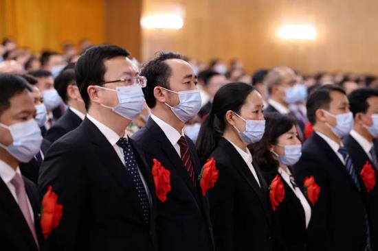 ▲茅台集团党委书记、董事长高卫东(左三)代表集团接受表彰。