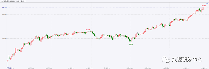 【2】库存减少+需求恢复,部分机构认为油价重返100美元有希望!部分机构预计,由于库存减少、需求恢复,国际油价可能在未来18-24个月重回100美元/桶。押注布伦特原油2022年12月将超过100美元的看涨期权未平仓合约数量在过去一周中从500上升至3950;阿塞拜疆分析机构SocarTrading SA乐观预测预测,布伦特原油将在未来18-24个月突破100美元/桶;美国银行分析认为,OPEC+减产持续至今年第一季度,已从市场上消除1.8亿桶过剩原油,而德克萨斯州的暴雪天气将使全球库存再减少5000万桶。受乐观基本面支持,美国银行预计布伦特原油在2026年之前平均为50-70美元,期间可能上探100美元;兴业研究此前也指出,如果简单按以往超级周期中油价最低涨幅98%计算,则此轮周期中油价年度均价的高点可能触及80美元/桶,不排除阶段性上探100美元/桶的可能。但是,目前需求向清洁能源转型,原油需求在本轮周期中有长期见顶的可能性