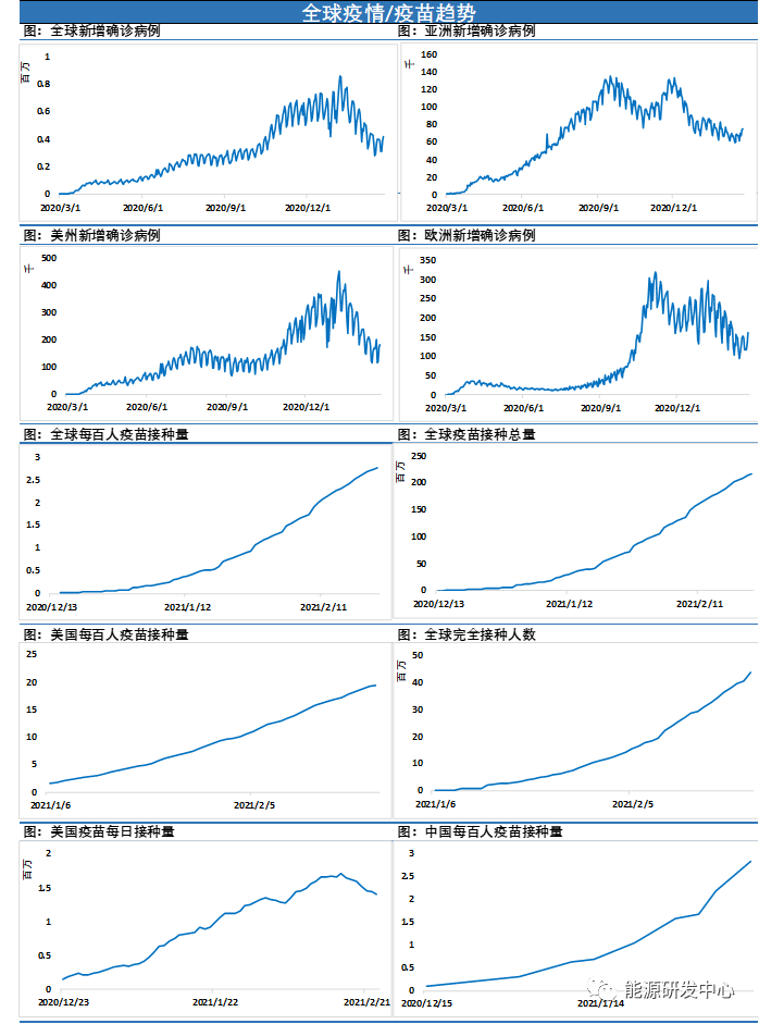 【1】巴克莱银行:预计第二季度欧佩克+将增加石油总供应150万桶/日,沙特阿拉伯将逆转4月的单边减产。因欧佩克+支持的放松、更多更具传染性的变种新冠病毒的风险以及较高的仓位,近期仍持谨慎态度。将2021年布伦特原油价格预期上调7美元/桶,WTI原油价格预期上调6美元/桶。预计2021年布伦特原油价格为62美元/桶,WTI原油为58美元/桶。