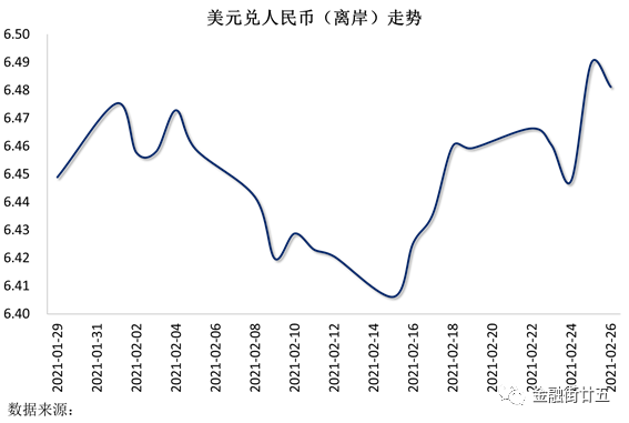 外汇市场:上周初,因市场风险偏好提升,叠加美联储主席鲍威尔鸽派言论,美元指数连续走软,盘中一度跌至89.68的七周最低水平;周四起,美债收益率快速攀升,带动美元指数大幅上行,截至上周收盘,美元指数收涨0.57%至90.88。人民币汇率缺乏明显方向,客盘主要随着汇价变化而购汇结汇,上周主要在【6.4441,6.4816】区间震荡,截至上周收盘,人民币对美元收贬0.27%至6.4730。