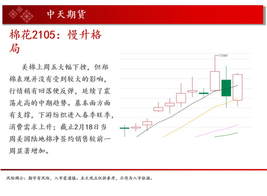 基本面概述:基本面方面有支撑,下游纺织进入春季旺季,消费需求上升;截止2月18日当周美国陆地棉净签约销售较前一周显著增加。