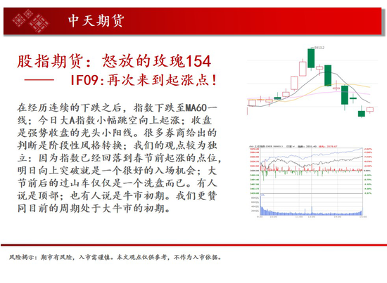 操作建议:在经历连续的下跌之后,指数下跌至MA60一线;今日大A指数小幅跳空向上起涨;收盘是强势收盘的光头小阳线。很多券商给出的判断是阶段性风格转换;我们的观点较为独立:因为指数已经回落到春节前起涨的点位,明日向上突破就是一个很好的入场机会;大节前后的过山车仅仅是一个洗盘而已。有人说是顶部;也有人说是牛市初期。我们更赞同目前的周期处于大牛市的初期。