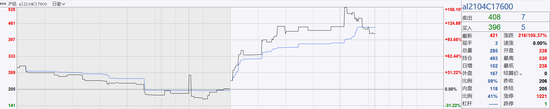 与之相关的期权看涨合约大幅上涨,其中,行权价为17600元/吨的沪铝2104看涨期权盘中涨幅超100%。