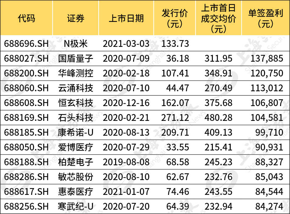这意味着,极米科技一举成为2021年单签盈利最高的新股,同时是科创板史上单签盈利最高的股票。