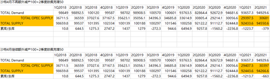 在未调需求增速的情况下,基本上2季度还能保持去库的状态。以沙特退出100万桶/天的额外减产为例: