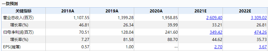 本次激励计划的解除限售考核条件为:相比2020年,2021-2023年收入增速不低于28%/62%/104%,净利润(扣非扣费)增速不低于42%/101%/186%。2020年,盐津铺子营业收入为19.59亿元,同比增长了40%。而机构的一致预测数据中,预计其2021、2022年营收增速为33%、26%,净利润增速为45%、36%。