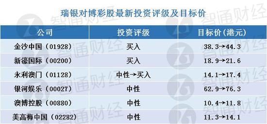 瑞银发布研究报告,将博彩股目标价平均调高19%,行业首选金沙中国(01928)、新濠博亚、新濠国际(00200)及永利澳门(01128)。