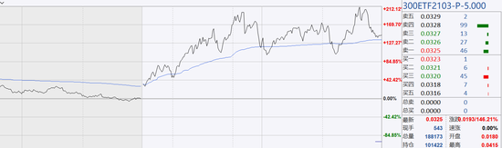 当日多个300ETF认沽期权合约录得大幅上涨,其中,涨幅最大的是行权价为5.00的上证300ETF认沽期权合约,该认沽期权合约收涨146.21%。
