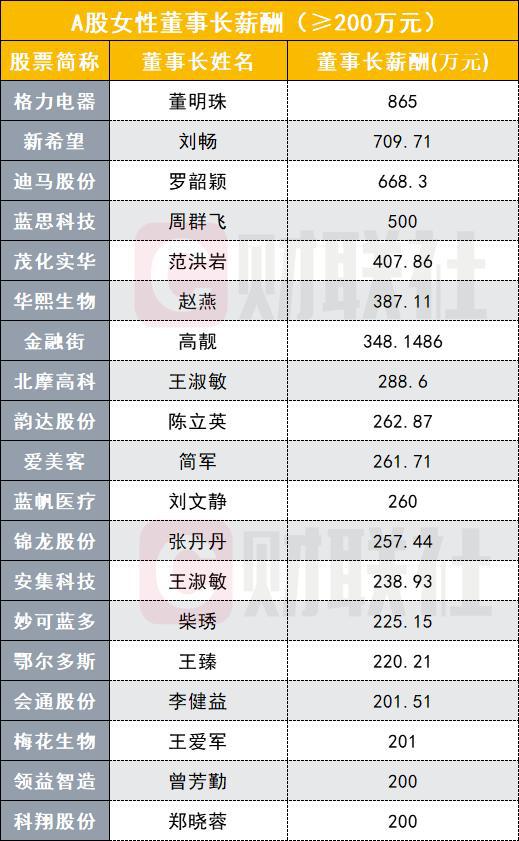 “她们”人均年薪超过百万 董明珠再度力压群芳