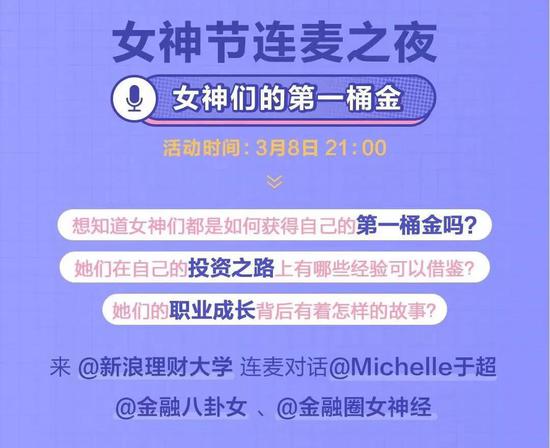 你将有机会和华尔街资深财经媒体人于超、超人气财经博主@金融八卦女、@金融圈女神经实时互动,共享理财秘籍和人生经验,一起蜕变成长!