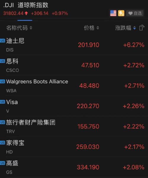 迪士尼领涨道指,市值猛涨1400亿