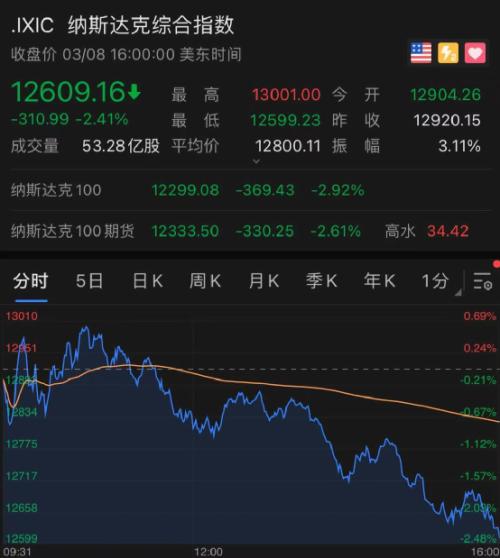 道指盘中创新高,纳指跌超2%