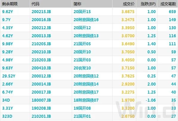 2、国开行6个月、2年、7年、10年期金融债中标收益率分别为2.3992%、2.9649%、3.5153%、3.6041%,投标倍数分别为4.93、10.57、4.96、3.36。