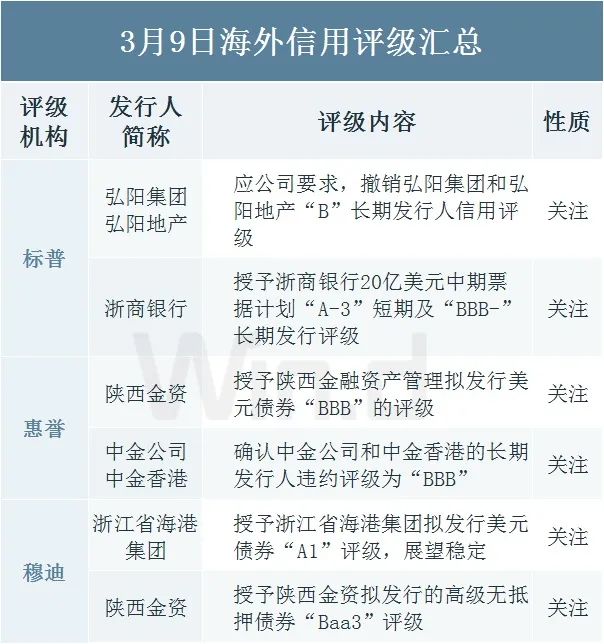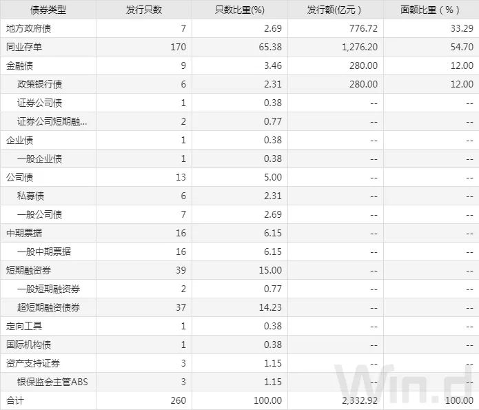 从发债类型看,3月9日,债券市场共发行地方政府债7只,同业存单170只,金融债9只,企业债1只,公司债13只,中期票据16只,短期融资券39只,定向工具1只,国际机构债1只,资产支持证券3只。
