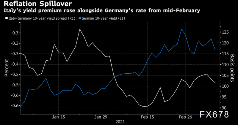 美国大规模财政刺激措施的前景在上个月底引发了全球债券的抛售,一些欧元区官员担心该地区将无法承受融资条件收紧。预计欧元区的复苏将比许多其他发达经济体更慢,因为高感染率和缓慢的疫苗推出迫使更长的封锁期。