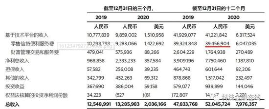 今年2月3日,陆金所发布的2020年财报显示,2020年全年,总营收520.5亿元(79.76亿美元),较2019年的478.3亿元同比增长8.8%;净利润122.76亿元(18.81亿美元),较2019年的133.17亿元同比下降7.8%。其中,零售信贷服务费收入为394.6亿元,占其520.5亿元总营收的比例超过75%。